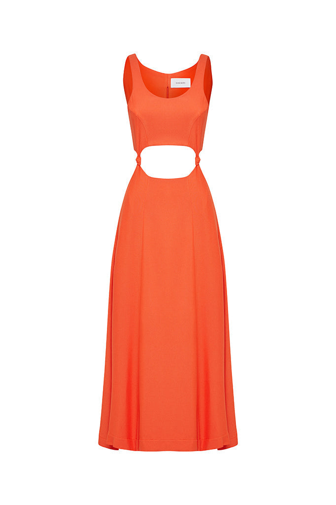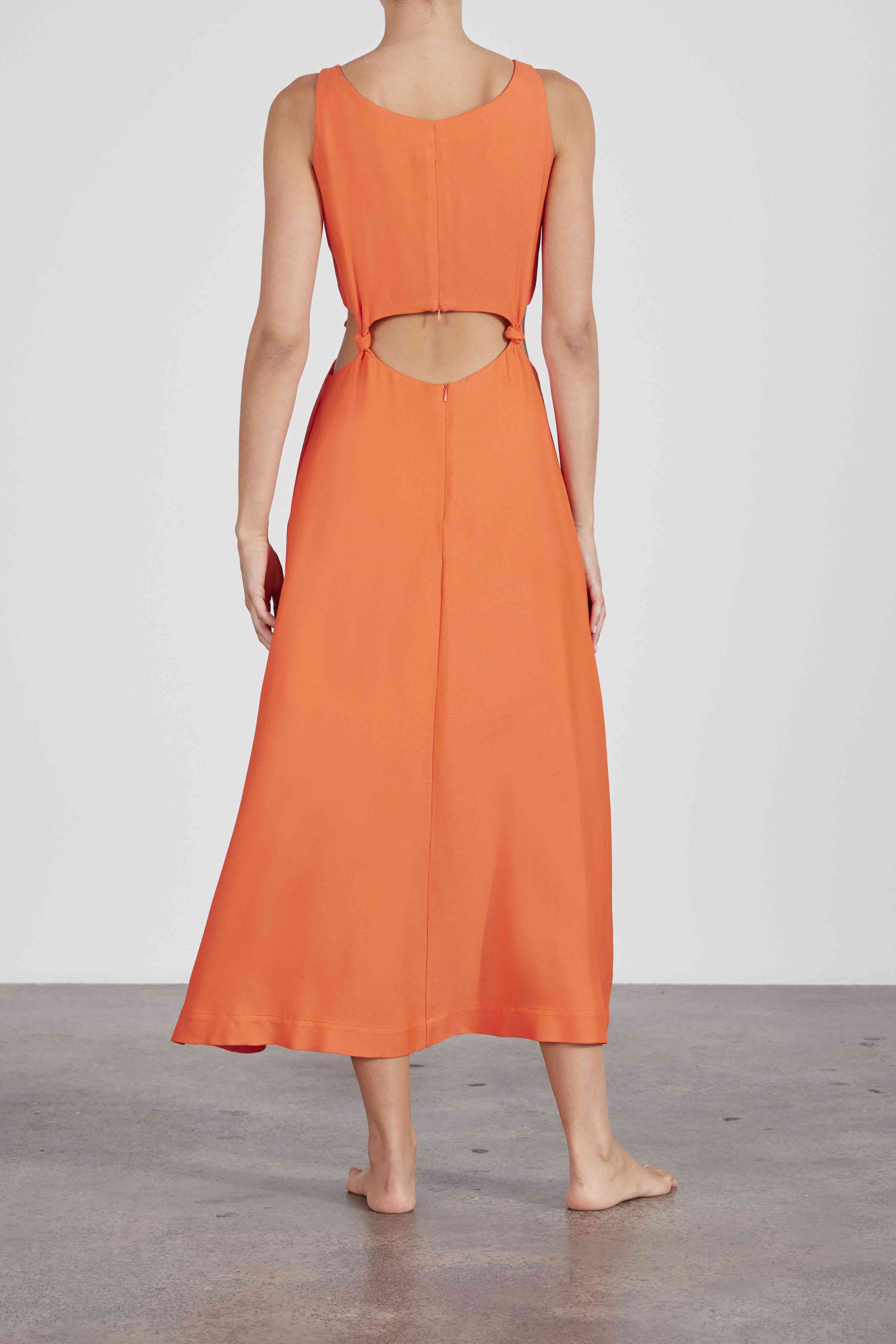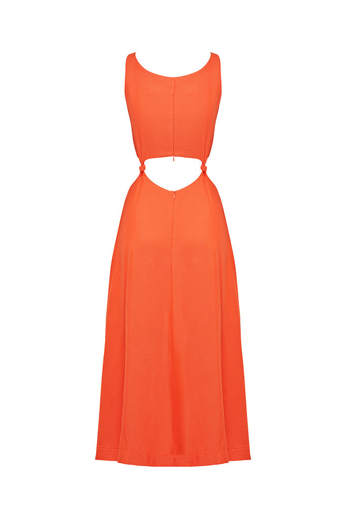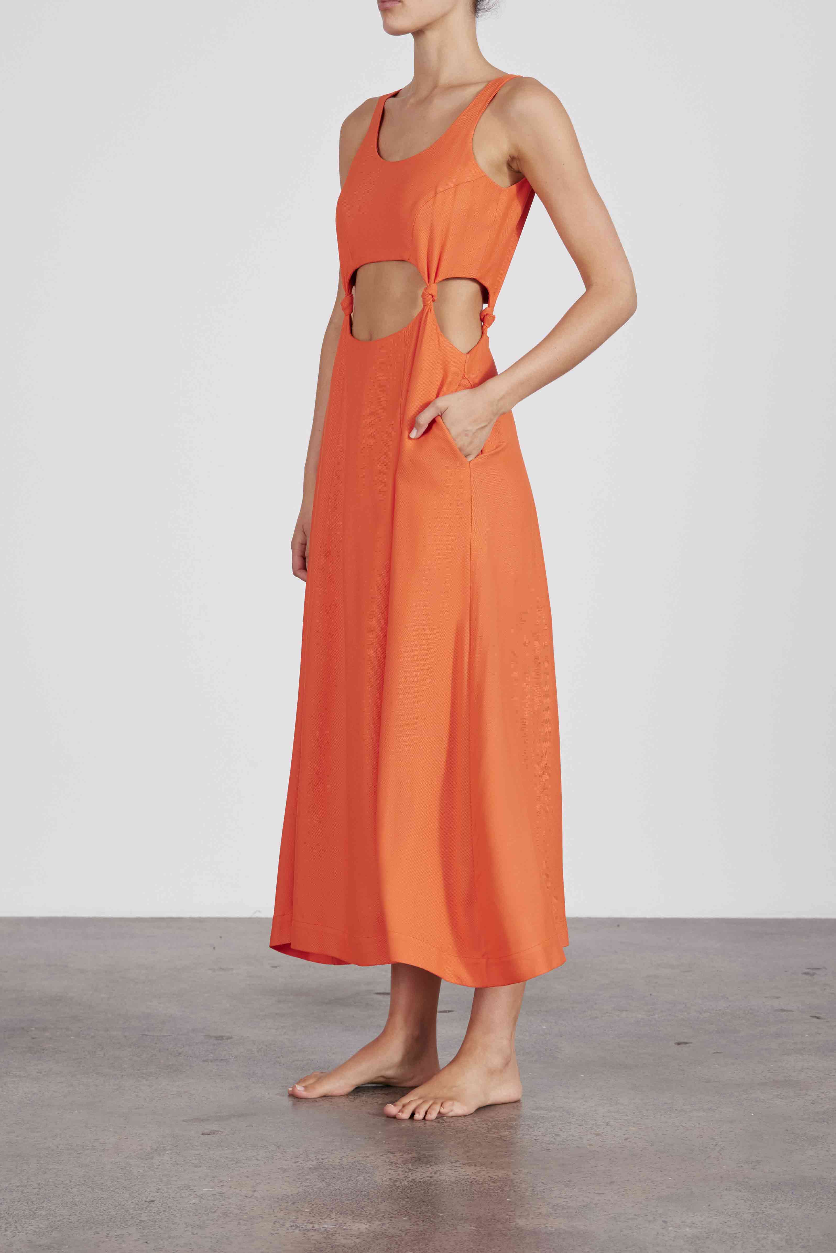 The Tenerife Dress in Tomato is effortlessly cool. Cut from a luxurious viscose rayon blend, this on-trend design features cutouts at the waist and back, fixed tie knots, panel lines for enhanced fit and deep side pockets. Tenerife has a flared skirt silhouette and is closed with an invisible zip at the centre back.