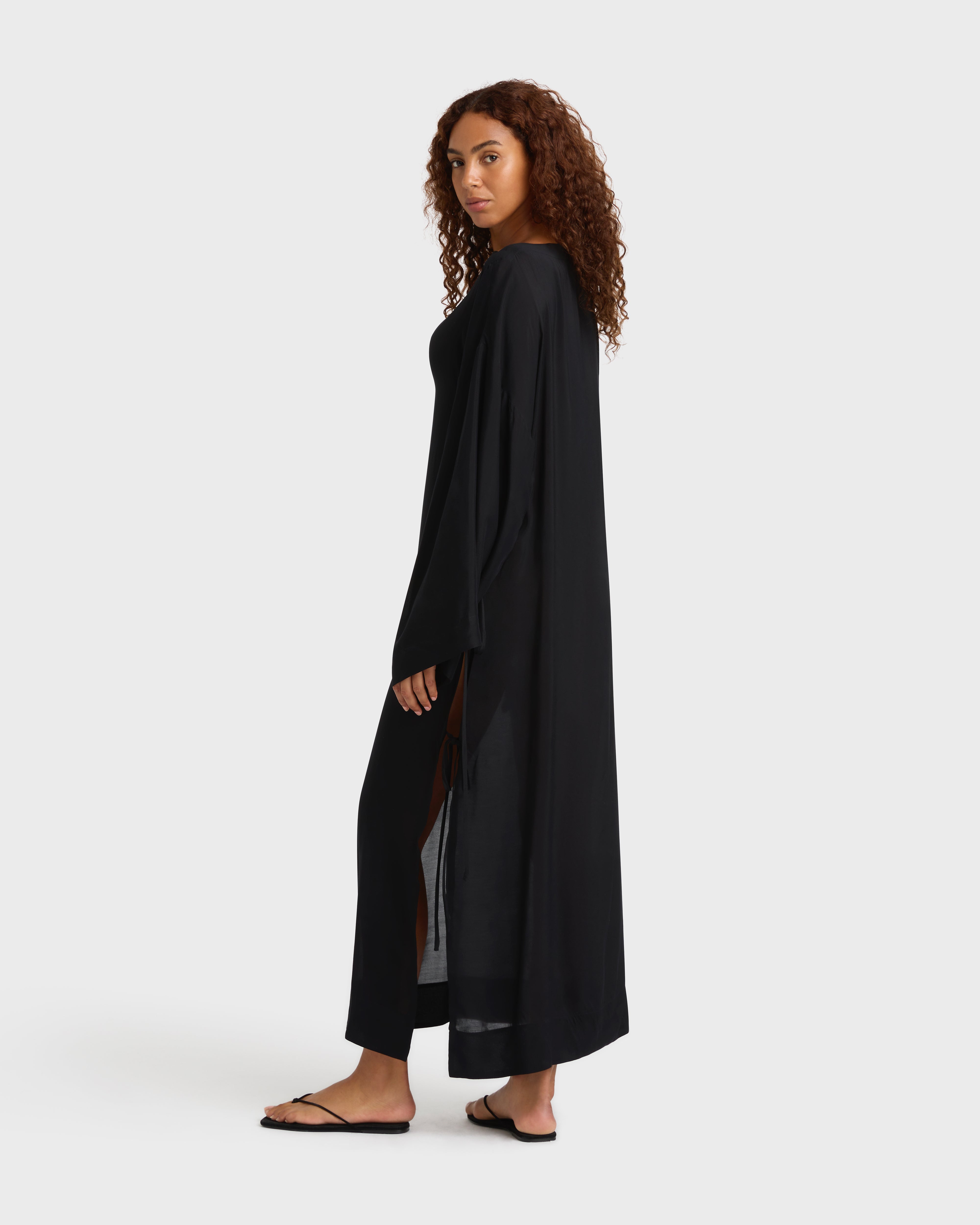 Cremona Tie-Side Maxi Coverup - Black - is backordered and will ship as soon as it is back in stock.