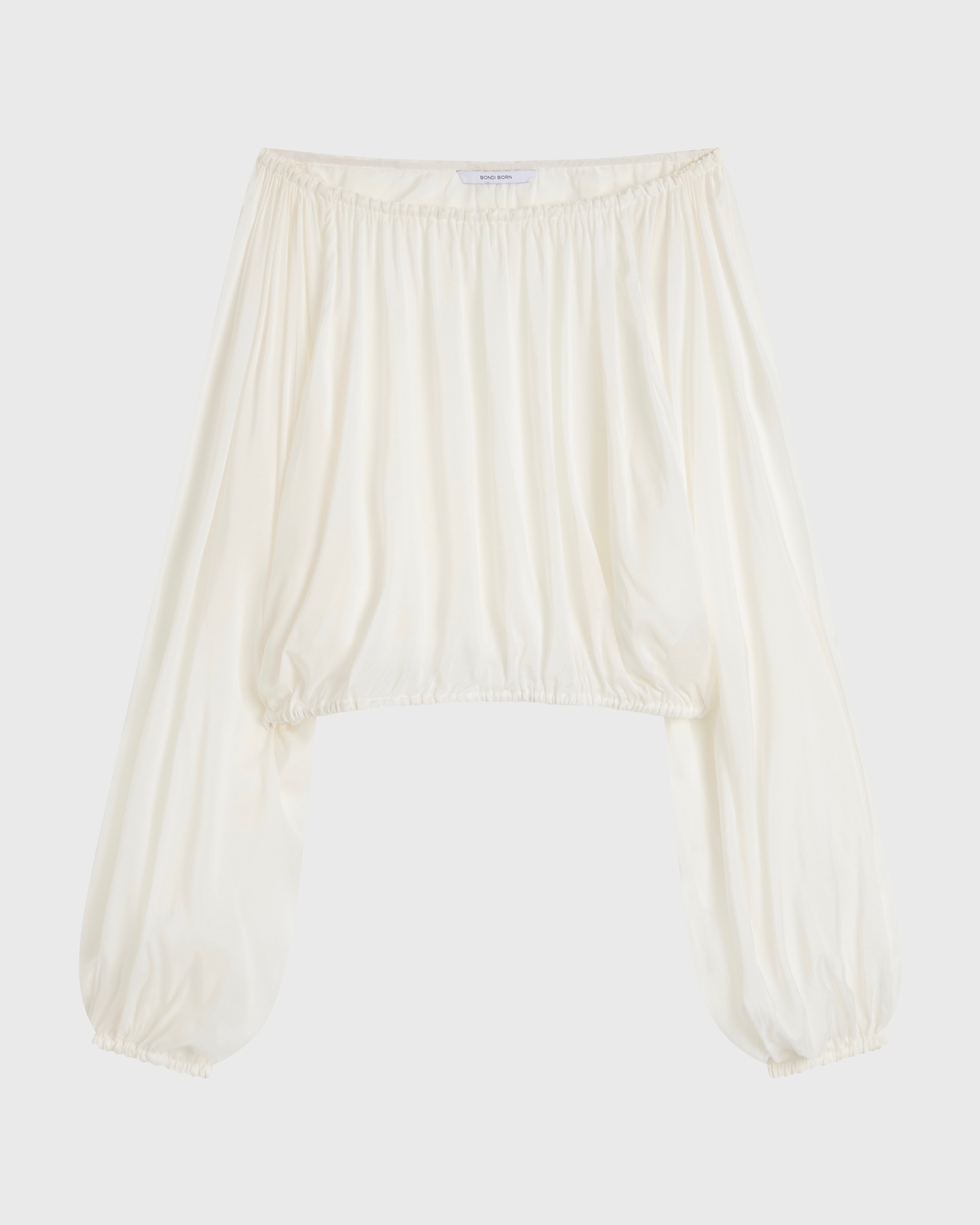 - Elasticated neck, sleeves, and hem create a softly voluminous, cropped shape