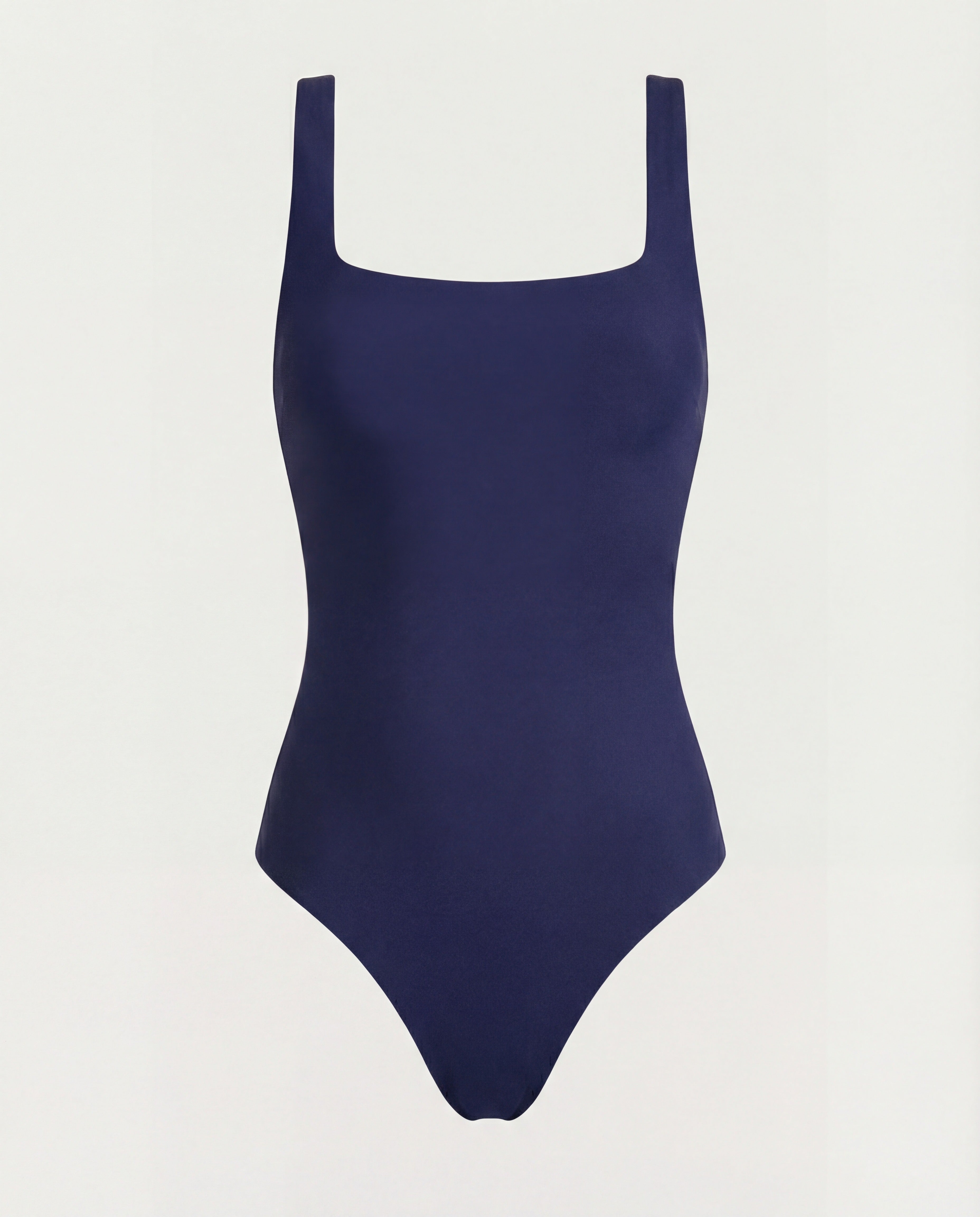 An elegant and flattering one piece swimsuit, the Margot in Maritime features a square neckline front and back. Featuring wide, soft shoulder straps, a medium-high cut leg and regular bottom coverage, Margot is self-lined in our ultra-soft Embodee™ fabric that gently shapes the silhouette. One of our all-time best sellers, Margot offers timeless, effortless style and supreme comfort.