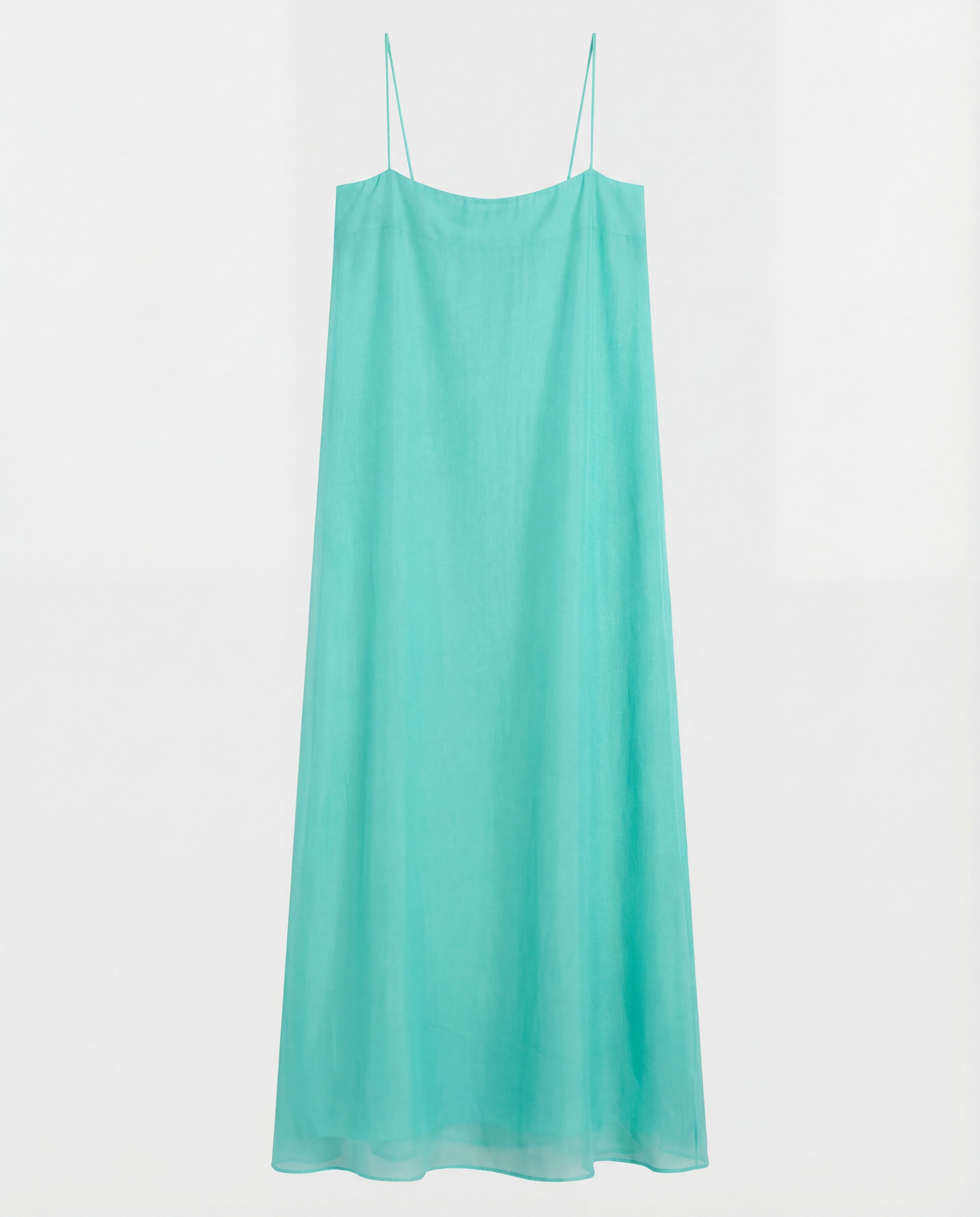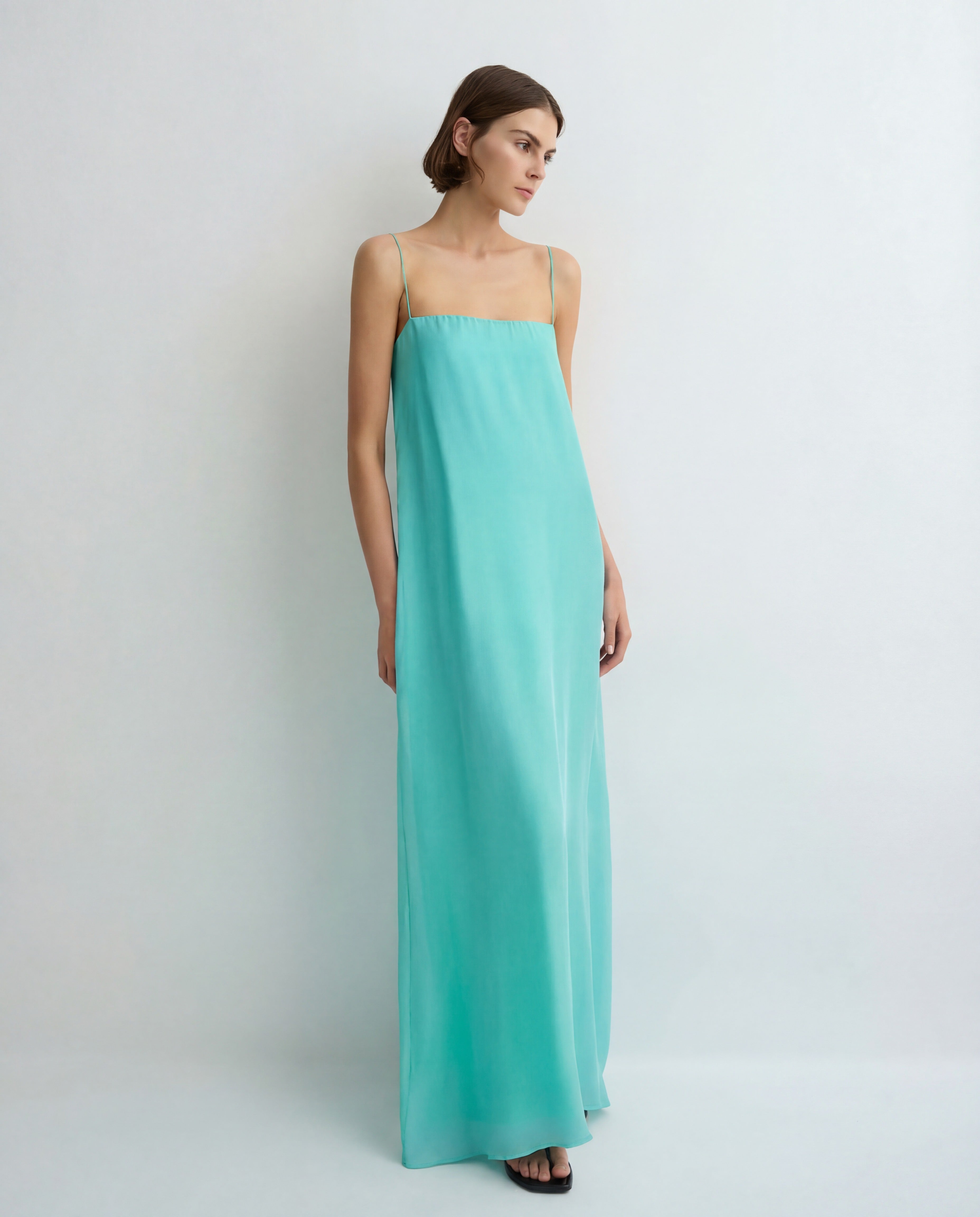 An effortless and flattering take on special occasion dressing, the Capri Silk Cami Dress in Aqua is cut from luxurious, 100% Silk and is lined in Italian FSC certified Viscose. This timeless silhouette features buttoning at centre back, adjustable shoestring straps and falls to the floor. The perfect dress for spring and and summer day or evening events.