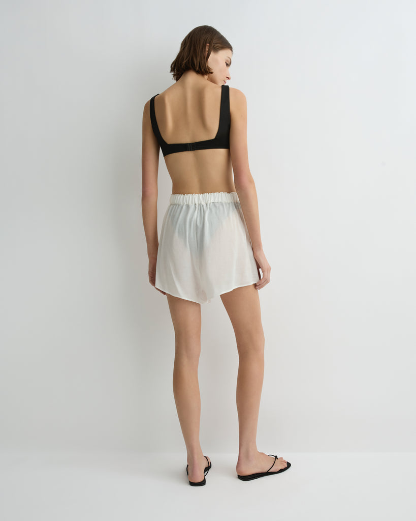 The Cremona Short in White are a lightweight summer staple, crafted from soft, sheer European rayon voile. Designed with an elasticated waistband and relaxed fit through the leg, they offer comfort and ease for warm-weather dressing. Perfect worn over swimwear or styled with the matching Cremona Oversized Shirt, they bring effortless versatility to resort wear.