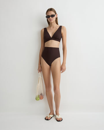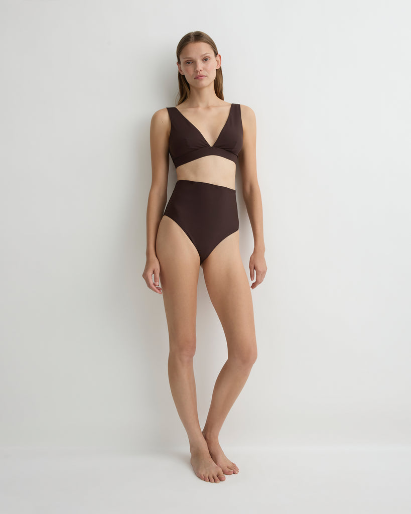 High-waisted Faith, now in Mocha, is our best-selling bikini bottom. Cut from our technically advanced Sculpteur® fabric with patented 3D stretch technology, Faith smooths and flatters the female form. Faith has a soft seam on the top edge that can be worn high or folded down. In this season's new Mocha hue, Faith is chic and contemporary, and perfect for women with tummy control concerns.