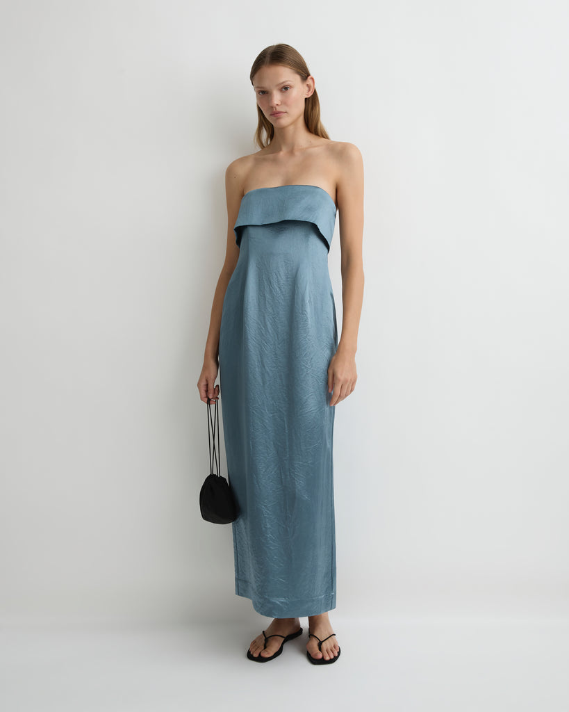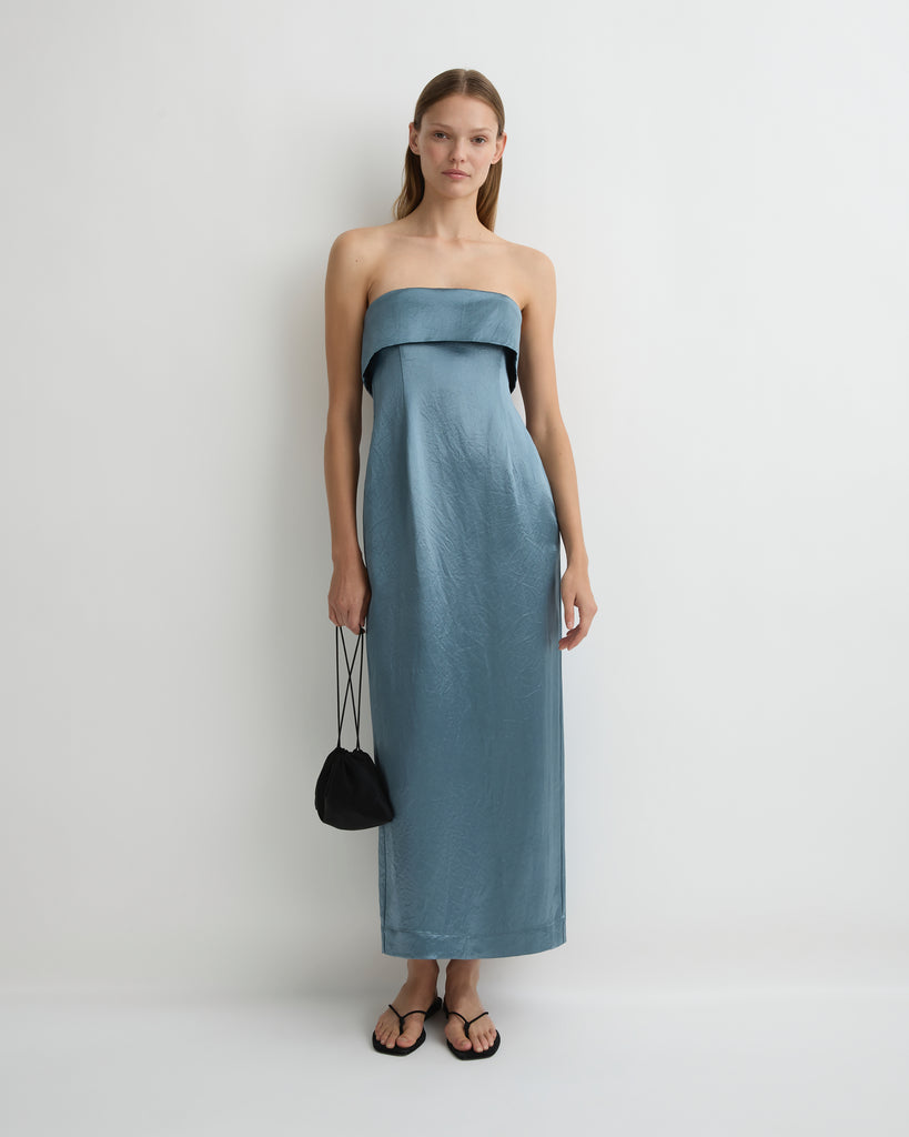 A sustainably made, breathable, mid-weight satin with a contemporary sheen. Ideal for evenings and events.