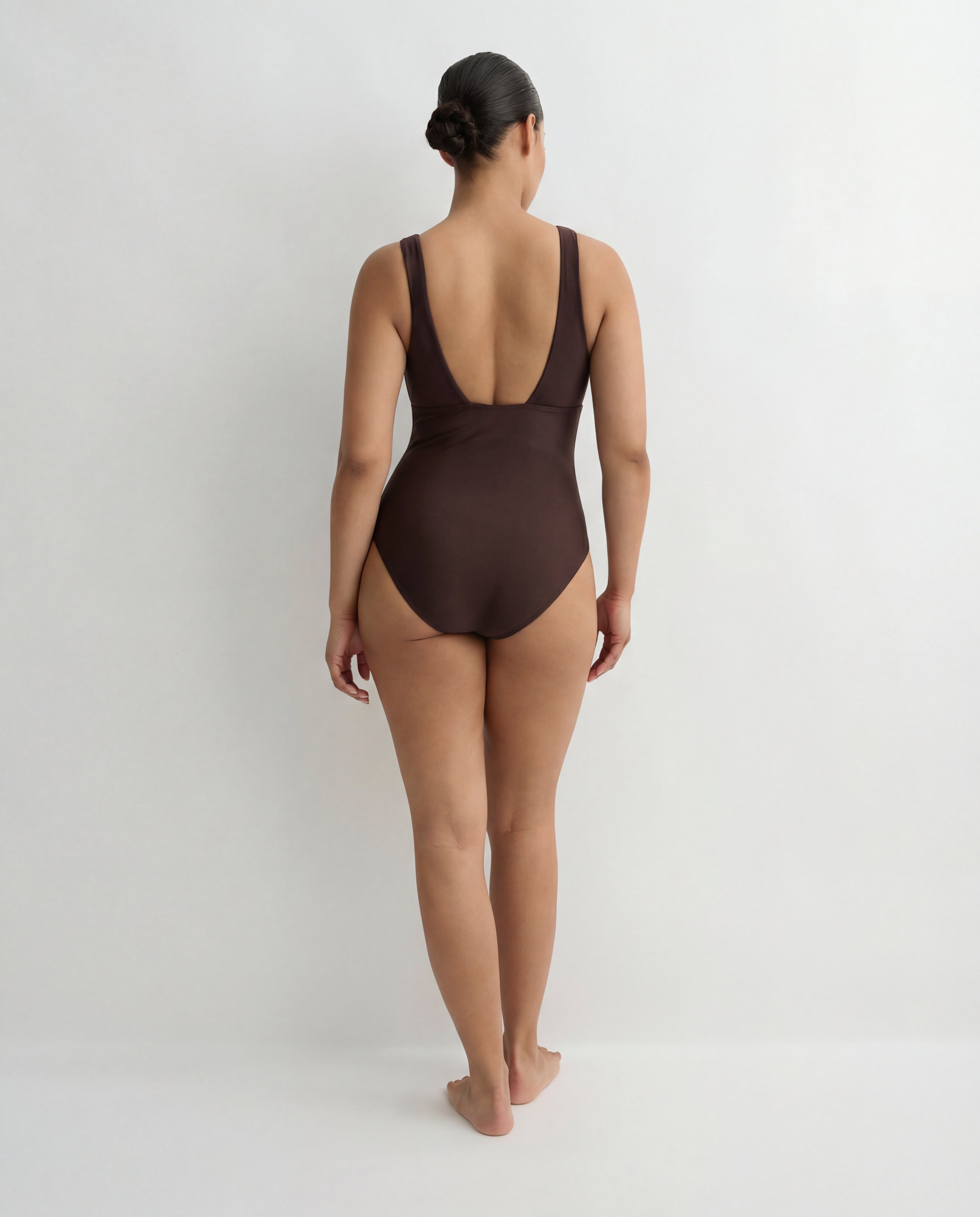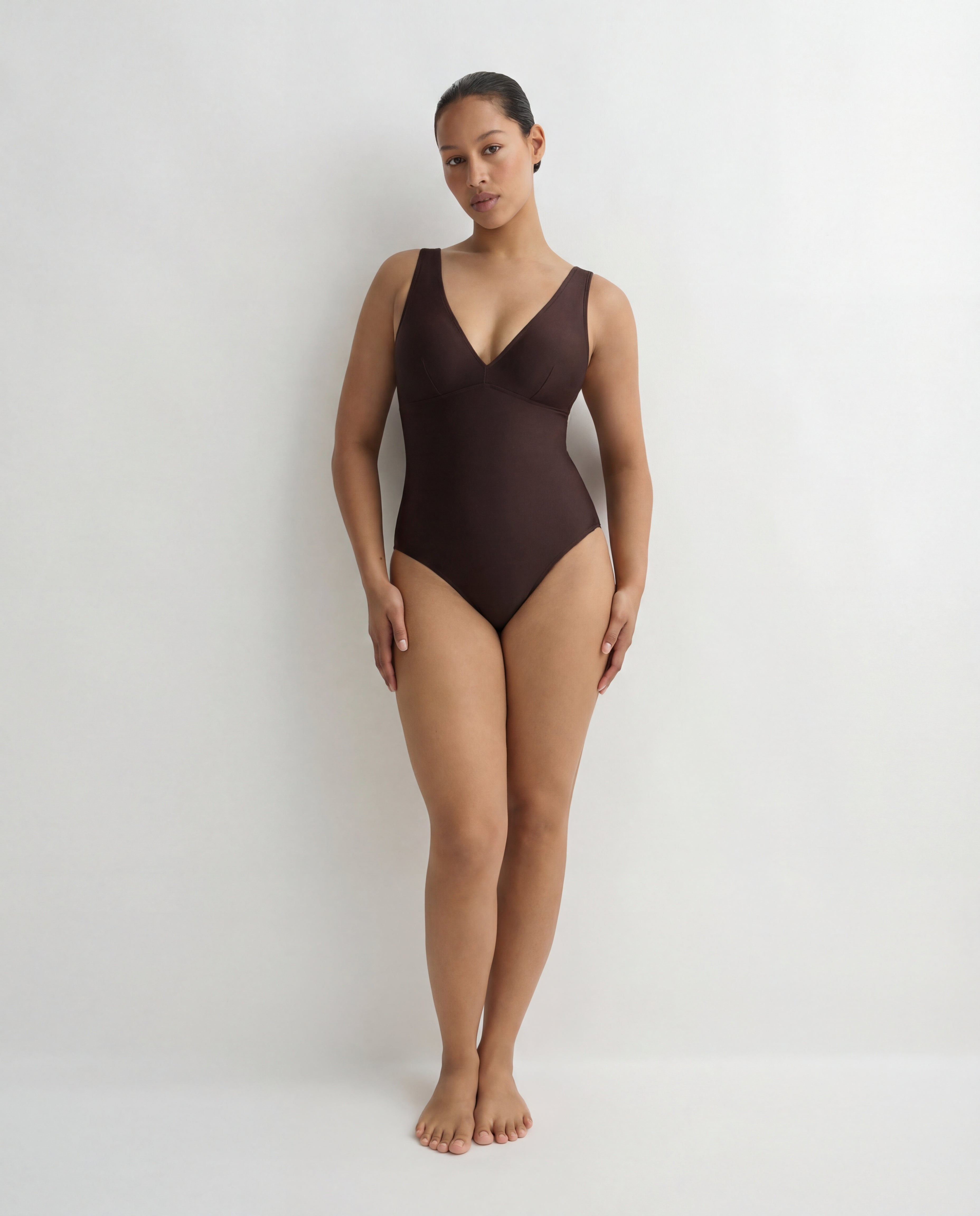 The Lecco One Piece in mocha features a flattering, plunge V neck and a supportive, under-bust seam. An effortlessly chic swimsuit, Lecco is crafted from our luxury, Italian Sculpteur® fabric, with a patented 3-D stretch technology that supports and flatters the silhouette. With wide, comfortable shoulder straps and assistance with tummy control, Lecco delivers ease and body confidence. Lecco is suitable for larger busts and cup sizes B-DD.