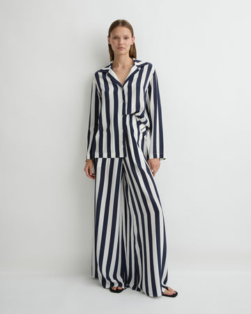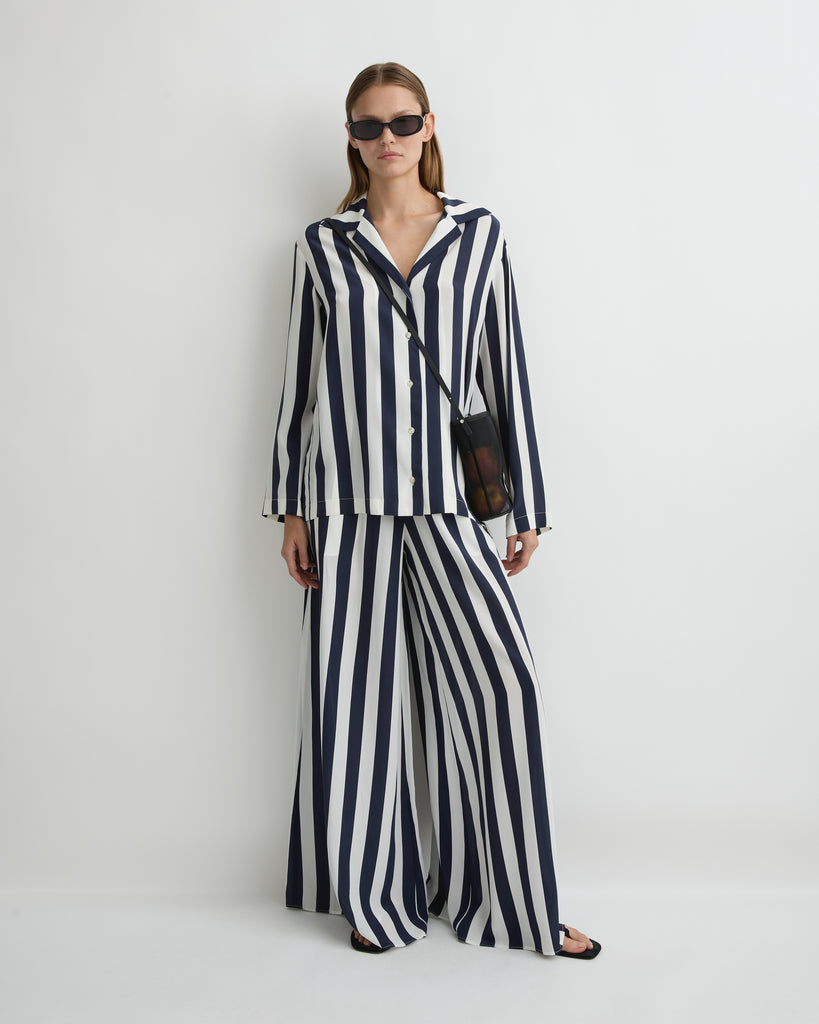 Orta Silk Long Sleeve Blouse - Navy Stripe